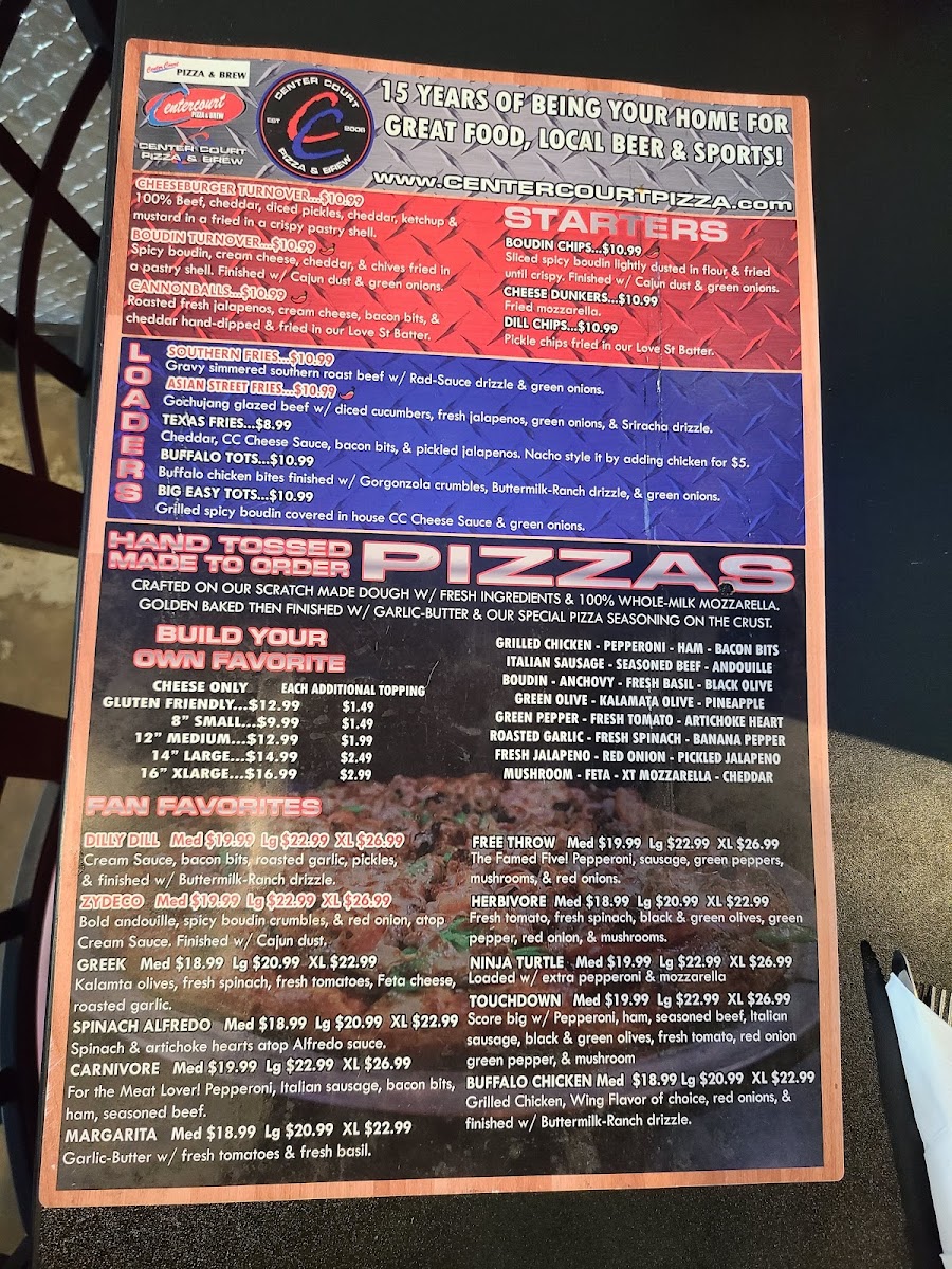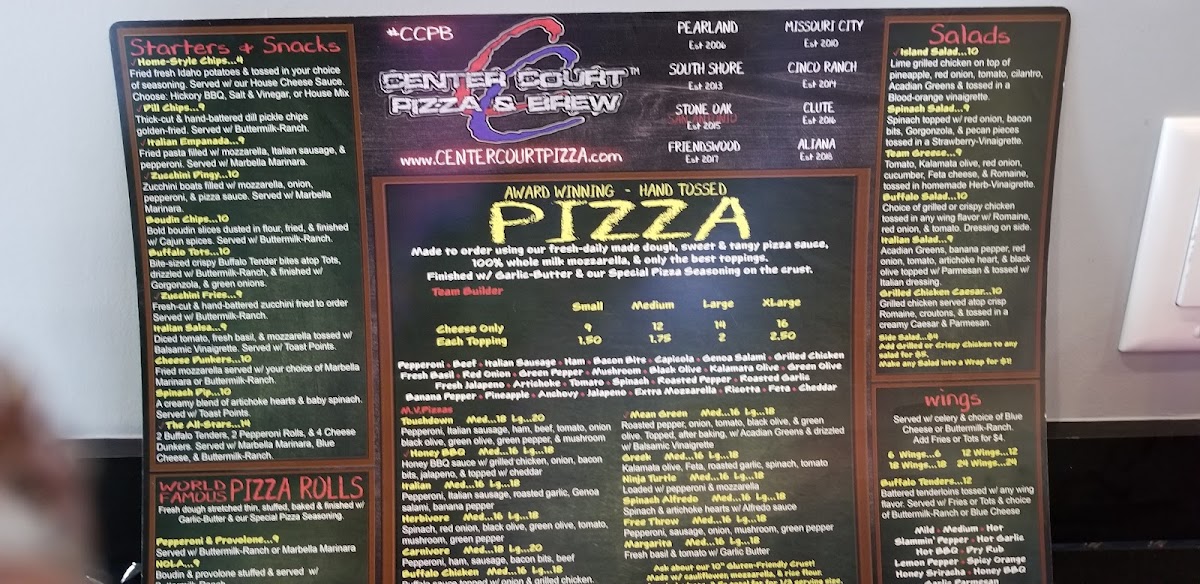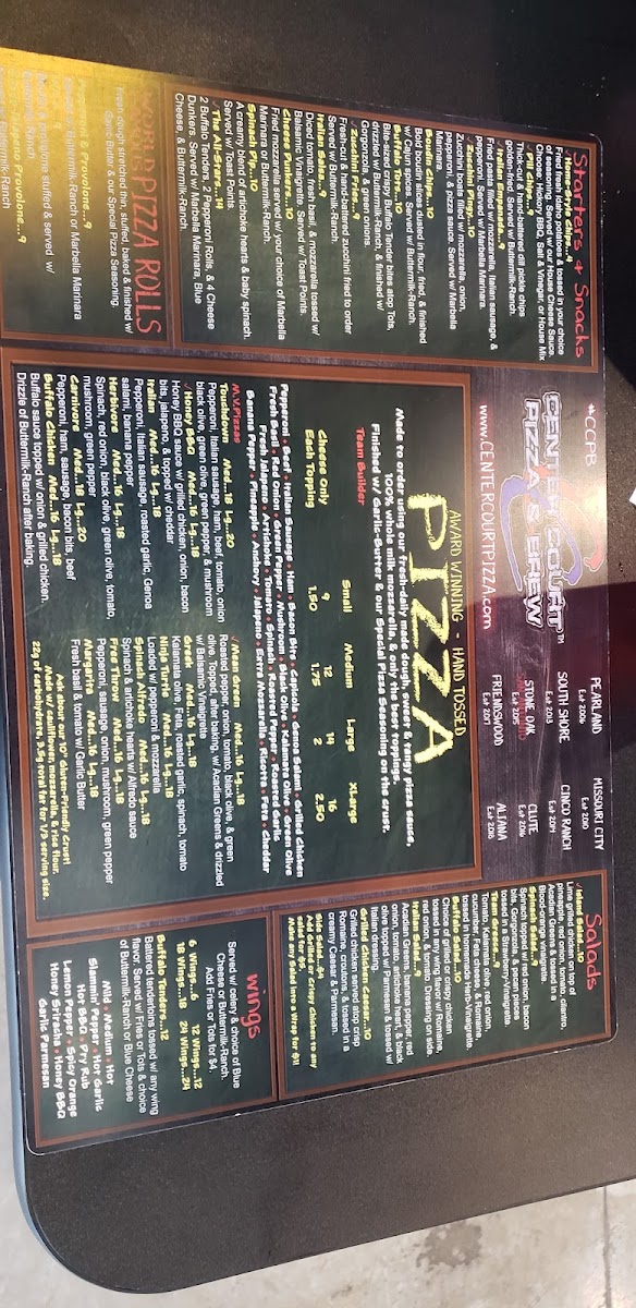 Welcome to Center Court Pizza & Brew Richmond, a delightful staple located at 18320 W Airport Blvd, Richmond, TX. This local pub is celebrated not just for its outstanding pizza but also for its inviting atmosphere. The menu features an array of options that cater to all cravings, from the signature Touchdown Pizza to delectable wings, making it a perfect spot for families and friends alike.